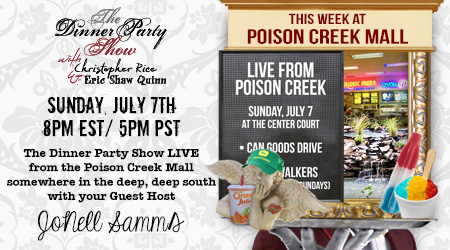 And, if you’re not familiar with The Dinner Party Show, my weekly, live comedy/variety internet radio show, why not? I’ve hardly talked about anything else for like the last two years!! Catch up on past show you missed or just relive the joy you already experienced listening to the Livecast. The most recent five shows play in continuous rotation at the website and on our free live apps for available for download for Apple and Android devices so you can take The Dinner Party Show anywhere. Or you can download past episodes for free at http://thedinnerpartyshow.com/category/show-archive/ or free at iTunes. Or you can listen to special favorite selections from the show available free at http://thedinnerpartyshow.com/special-correspondents/ or https://soundcloud.com/stream